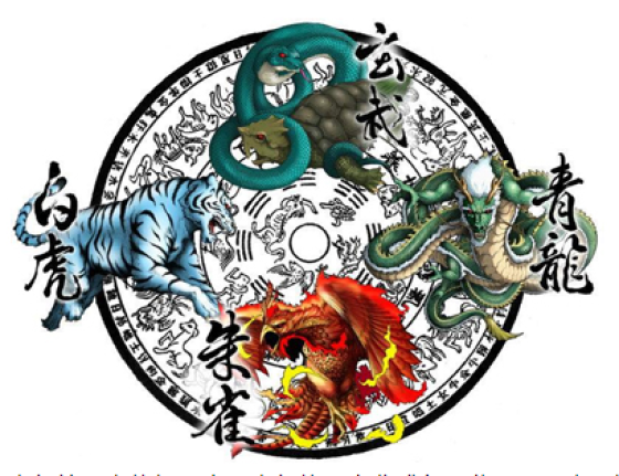 ÔÚµÀ½Ì»¤ÎÀÉñÖУ¬ÓÐÒ»ÖÖרÃÅÓÃÓÚÕòÊØµÀ¹ÛɽÃŵÄÌìÉñ£¬ËûÃǾÍÊÇÇàÁú¡¢°×»¢¡¢Öìȸ¡¢ÐþÎ䣬³ÆÎª¡°ËÄÏó¡±£¬Òà³Æ¡°ËÄÁ顱¡£ÈçµÀ½ÌʤµØÇà³ÇɽÌìʦ¶´(¹Å³£µÀ¹Û)£¬ÔÚΡ¶ëµÄɽÃÅÇ°Ãæ£¬×óÓÒ¸÷½¨ÓÐÒ»×ùÉñµî£¬×óµîËÜÍþÎäµÄÇàÁúÉñÏñ£¬ÃûÃÏÕÂÉñ¾ý£¬ÓÒµîËÜÓÂÃ͵İ׻¢ÉñÏñ£¬Ãû¼à±øÉñ¾ý¡£ÇàÁú¡¢°×»¢¡¢Öìȸ¡¢ÐþÎäÔ´ÓÚÖйú¹Å´úµÄÐÇËÞÐÅÑö£¬Öйú¹Å´ú½«Ìì¿Õ·Ö³É¶«¡¢±±¡¢Î÷¡¢ÄÏÇøÓò£¬³Æ¶«·½Îª²ÔÁúÏ󣬱±·½ÎªÐþÎä(¹êÉß)Ïó£¬Î÷·½Îª°×»¢Ïó£¬ÄÏ·½ÎªÖìȸÏó£¬ÊÇΪ¡°ËÄÏ󡱡£ÕâÖÖ¡°ËÄÏó¡±ÊǹÅÈ˰Ñÿһ¸ö·½Î»µÄÆßËÞÁªÏµÆðÀ´¼ÓÒÔÏëÏ󶸳ɵÄËÄÖÖ¶¯ÎïµÄÐÎÏó¡£Èç¶«·½²ÔÁú£¬½ÇËÞÏóÁú½Ç£¬Øµ¡¢·¿ËÞÏóÁúÉí£¬Î²ËÞÏóÁúβ¡£ÄÏ·½ÖìȸÔòÒÔ¾®ËÞµ½éôËÞÏóÄñ£¬ÁøËÞΪÄñ×죬ÐÇΪÄñ¾±£¬ÕÅΪຣ¬ÒíΪÓðôç¡£ºóÀ´¹ÅÈËÓÖ½«ÆäÓëÒõÑôÎåÐÐÎå·½ÎåÉ«ÏàÅ䣬¹ÊÓж«·½ÇàÁú¡¢Î÷·½°×»¢¡¢ÄÏ·½Öìȸ¡¢±±·½ÐþÎä֮˵¡£ºóÓÖ½«ÆäÔËÓÃÓÚ¾ü½Ñ¾üÁУ¬³ÉΪÐоü´òÕ̵ı£»¤Éñ£¬Èç¡¶Àñ¼Ç¡¤ÇúÀñÉÏ¡·Ô»£º¡°ÐУ¬Ç°ÖìÄñ(ȸ)¶øºóÐþÎ䣬×óÇàÁú¶øÓÒ°×»¢£¬ÕÐÒ¡ÔÚÉÏ¡£¡±³Âð©×¢Ô»£º¡°ÐУ¬¾üÂÃÖ®³öÒ²¡£Öìȸ¡¢ÐþÎä¡¢ÇàÁú¡¢×Ô»¢£¬ËÄ·½ËÞÃûÒ²¡£¡±ÓÖÔ»£º¡°ì¼(liu£¬Æì×ÓÉÏµÄÆ®´ø)Êý½Ô·ÅÖ®£¬ÁúÆìÔò¾Åì¼£¬È¸ÔòÆßì¼£¬»¢ÔòÁùì¼£¬¹êÉßÔòËÄì¼Ò²¡£¡±¼´ËµÆä±íÏÖÐÎʽÊǽ«¡°ËÄÏó¡±·Ö±ð»­Ô